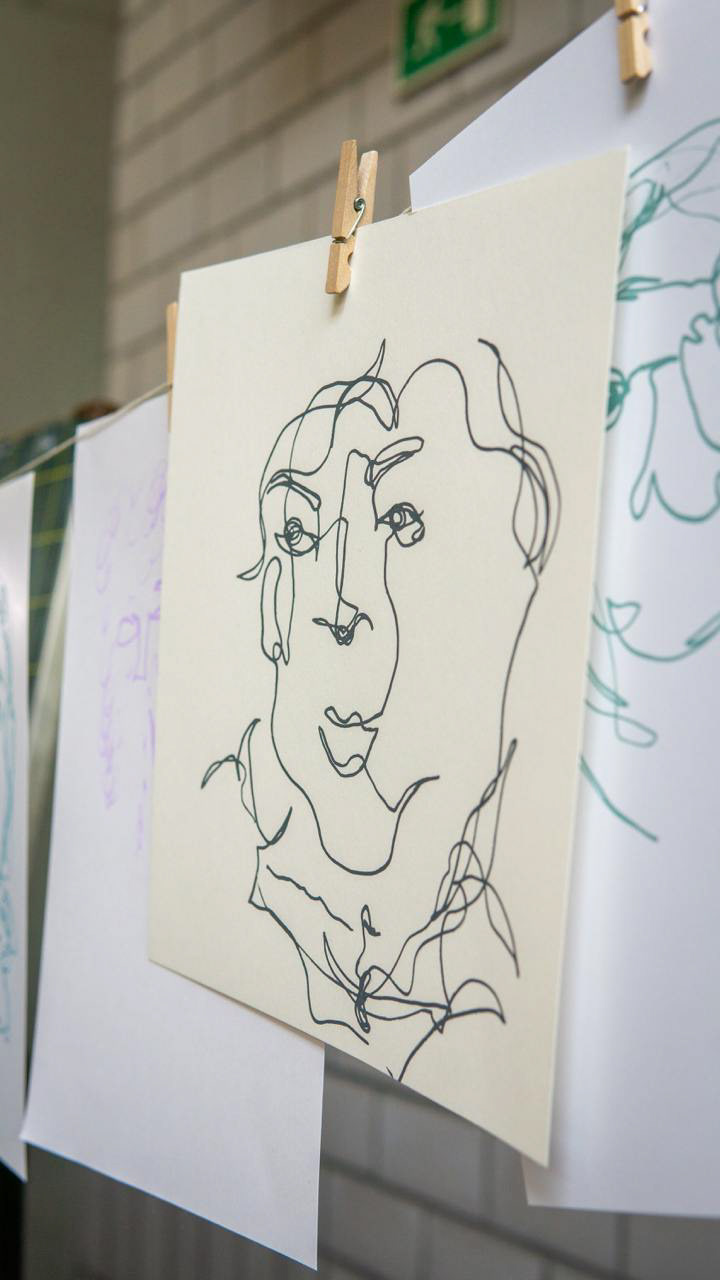 Bei unseren Live-Zeichen-Events porträtieren wir Ihre Gäste direkt vor Ort. Dabei entstehen spannende Blindzeichnungen, entfremdete Porträts, die aus nur einer Linie bestehen. Jede Zeichnung ist ein Unikat – als Erinnerung für Ihre Gäste oder als originelles Event-Highlight.